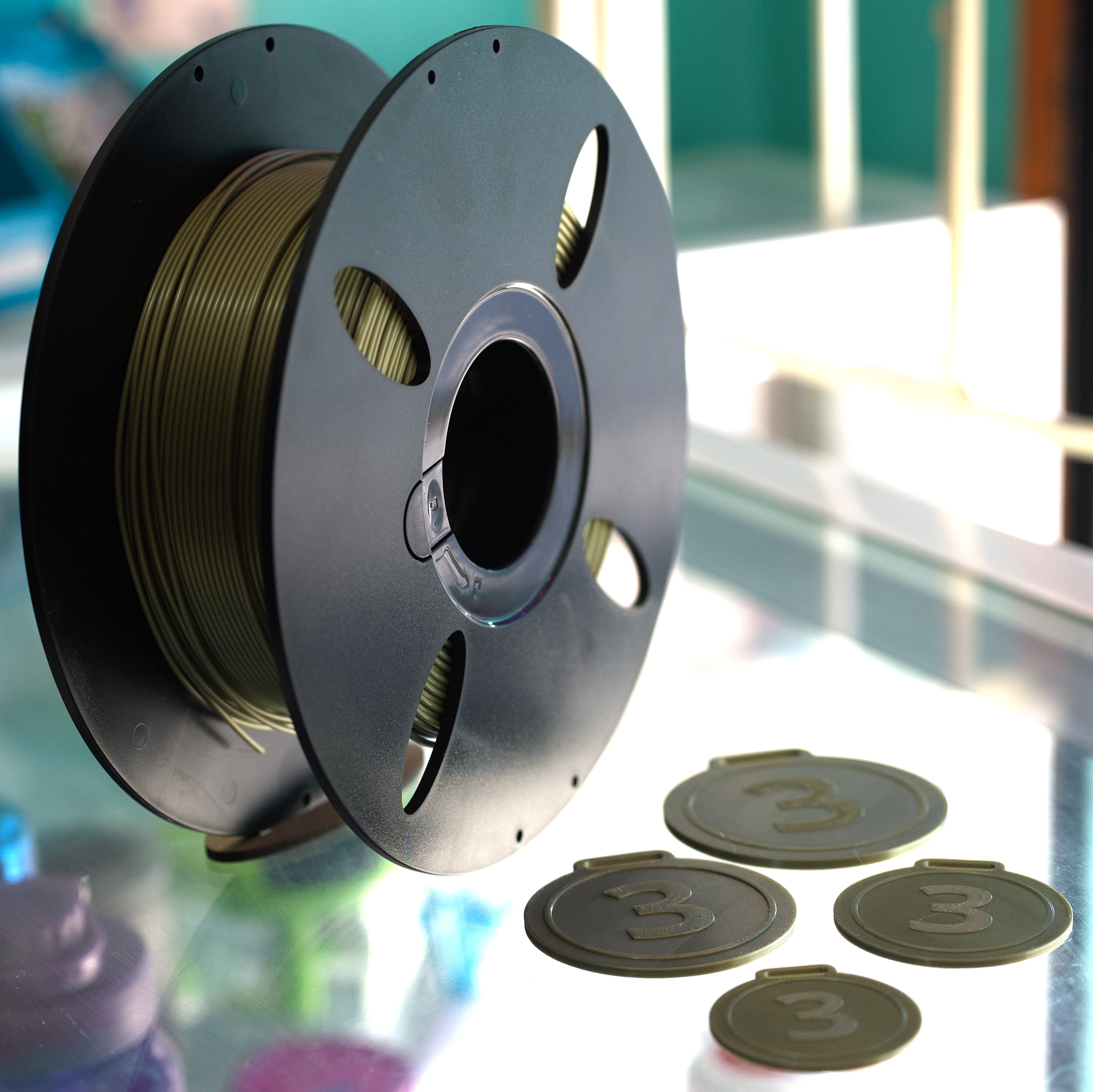 Medallas premiación 3er lugar. 5.5 cm de diámetro. Filamento PLA color bronce.